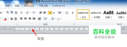 返回word主界面,输入两个制表位,如图所示,在两个制表位之间插入公式,末尾输入equ