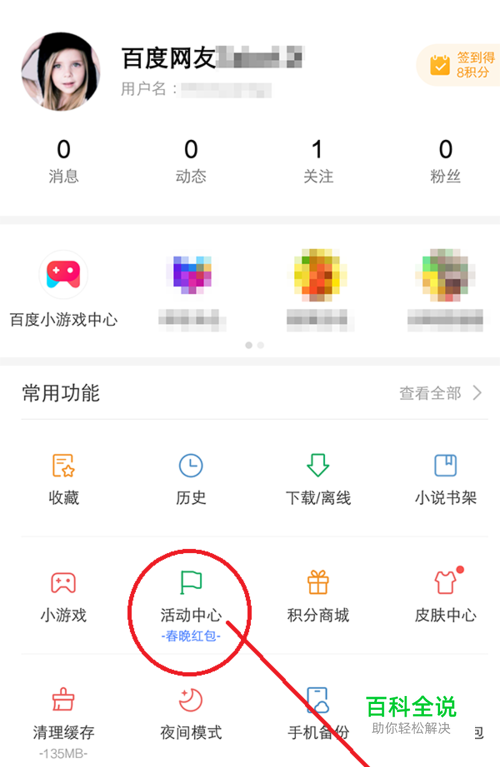 打开百度,选择【我的】,点击“活动中心”。 注意:要使用最新版本才能参与活动。