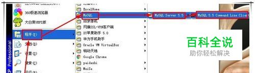 打开mysql客户端 依次菜单“开始”——“程序”——“MySQL”——“MySQL Server 5.5”——“MySQL 5.5 Command Line Client“,打开mysql客户端程序。