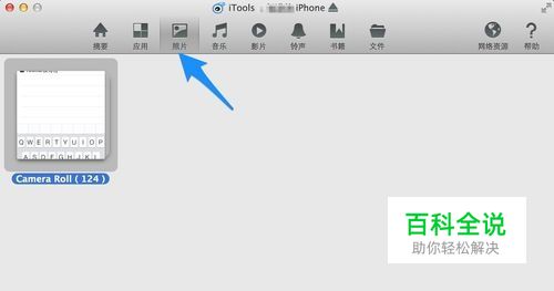 比如我们想用 iTools 把手机中的照片导出来,可以点击 “照片”一栏,如图所示