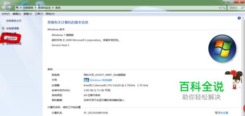 第一步,右击"计算机”,点击“属性”,窗口如图所示
