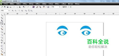全部选中眼眶,蓝色正圆,白色正圆这三个图形,点击工具栏的“群组”图标按钮,把它们组合在一起