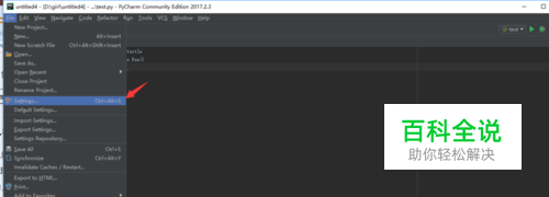 启动pycharm,我们能看到默认的字体非常小,此时我们点击“file”