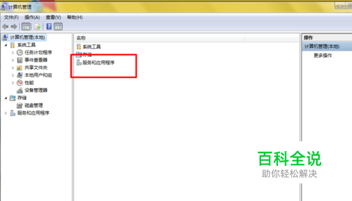进入管理选项后里面有一个服务选项,展开。 也可以直接在开始菜单中搜索服务,在搜索结果中直接打开也可以。