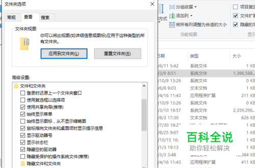 在文件夹选型中选择<查看>,然后在下拉框中,去掉<隐藏受保护的操作系统>前的复选框