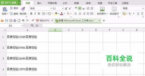 把WPS文档的内容复制回WPS表格中,完成复杂数据中删除数字部分。