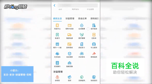 在首页找到“花呗”选项,或者点击“更多--财富管理--花呗”。