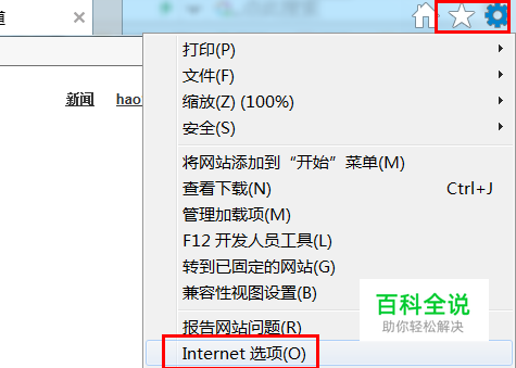 打开选项卡页面 浏览器菜单栏 -- 设置 -- Internet选项