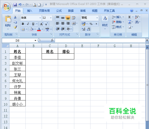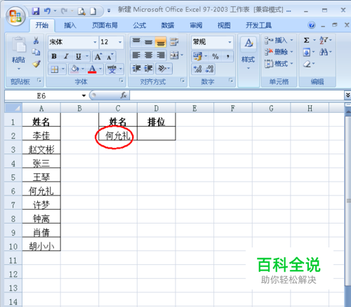 Excel中怎样根据名字查找其在数据列表中的排位
