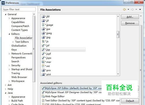安装了MyEclipse后,编辑JSP页面,会打开JSP的编辑页面,同时也有预览页面,速度很慢。 选择菜单:Window --> Preferences -->General --> Editors --> File Associations