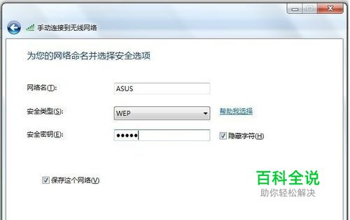 .网络名随便填,(注意:必须是英文名字)安全类型选择WEP,密码6位~8位(推荐使用a123456789,纯数字密码可能不能创建)+ }0 }( N% m% ~, r) m! H" u3 A5 ^然后点下一步完成创建!