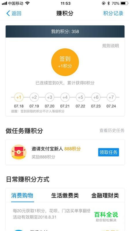 你还可以通过日常的消费获得一定数量的支付宝积分。