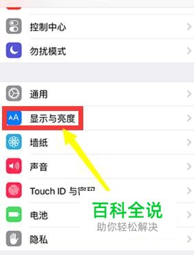 进入设置界面,找到“显示与亮度”,进入下一界面。