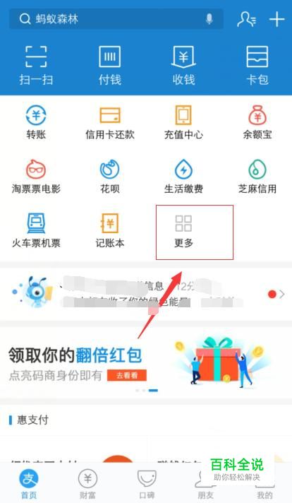 打开手机支付宝账号,点击更多,如下图;