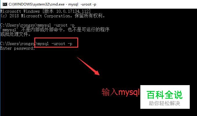在打开的CMD命令行中我们输入mysql命令,注意-u代表的是登录用户,-p代表的是登录密码,如下图所示