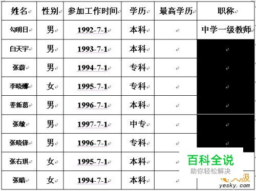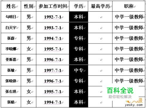 在表格中先选中“中学一级教师”几个字,单击“编辑”→复制,再选中准备填充“中学一级教师”这几个字的所有单元格,单击“编辑”→粘贴,这样就能把选中的单元格一次性都填充上“中学一级教师”这几个字了。