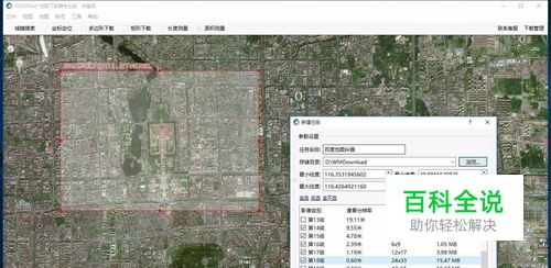 1、首先打开地图下载器,切换地图至百度地图。这个以北京为例,框选下载范围,选择路径以及下载的级别,点击确定开始下载。
