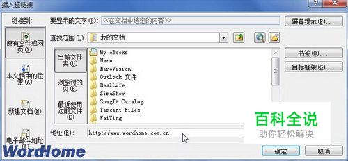第2步,打开“插入超链接”对话框,在地址编辑框中输入网页链接地址(也可以链接向指定文件),并单击“确定”按钮,如图2011110219所示。 图2011110219 编辑图片超链接地址