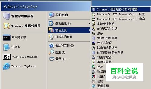 二、系统环境检查以及准备所需软件篇 1、检查系统是否已安装IIS 单击:“开始”-“管理工具”。 检查是否存在“Internet 信息服务 (IIS) 管理器”,由于操作系统盘中会自带 IIS 组件,所以建议安装操作系统时也把 IIS 组件安装上。如果未安装,可以到网络上下载对应操作系统版本的 IIS 。