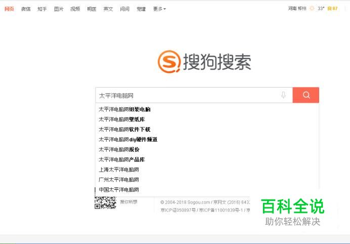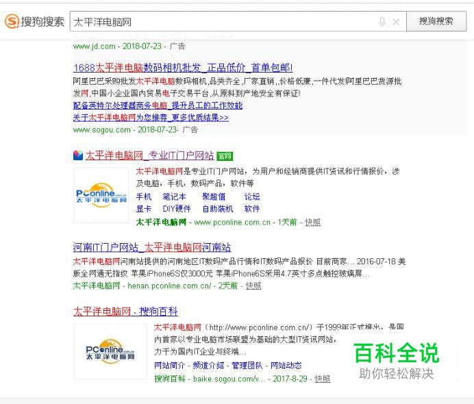 首先在搜狗搜索中输入“太平洋电脑网”。