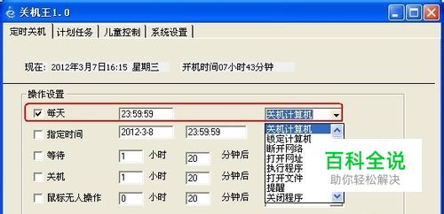 当然,还可以设置指定的时间执行某个特定的程序:2012-3-16 23:59:59执行某个程序。