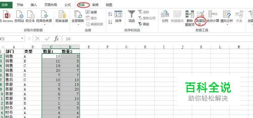 中两列数字,点击数据---数据验证下拉(注意:早期版本excel叫数据有效性)---圈释无效数据(即:表中大于等于10的数字)---标注出不符合条件的数据。详情如图标注所示: