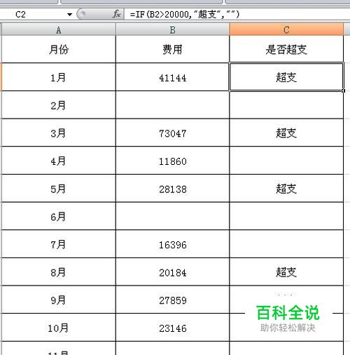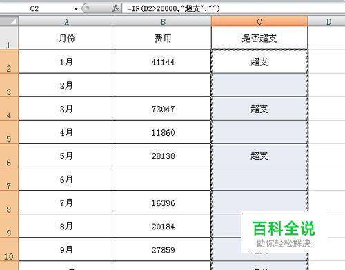 如下数据表,在超支一列使用了一个公式,用了if函数