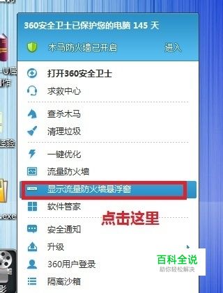 出现流量防火墙悬浮窗,我们左点击