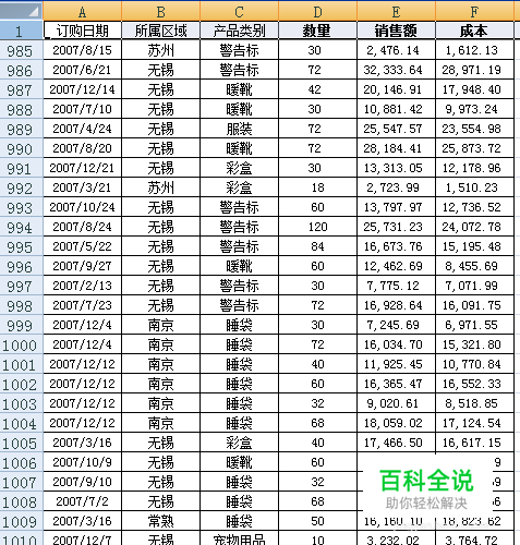 首先想要做数据透视表,那么前期一定是有一个原表的,那么做起之前,要对于原表进行分析,看原数据表具备了哪些数据,以及想要弄成如何的结果,如图所示复杂的数据;根据数据可以清楚看到,数据多达2000多行,数据包含了每月每日以及各个地区以及物品的数量,那么做数据透视表的目的就是汇总每个月某个地区的销售情况以及利润。