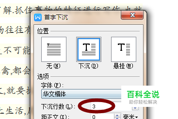 然后设置下沉的行数和样式,选择好之后点击确定。