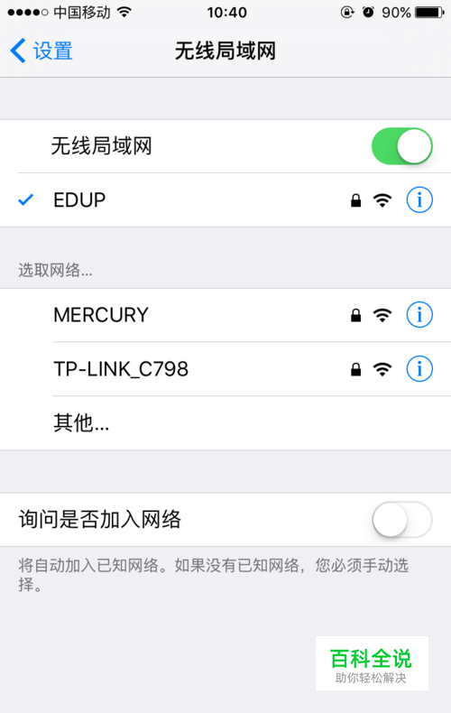 以IPHONE为例,首先打开无线网络设置。点击其他网络