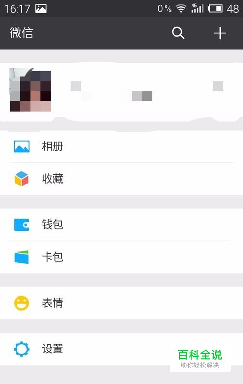 在手机桌面上打开“微信”,点击微信屏幕下方的按钮“我”,跳转到个人相关信息设置页面,在这个页面里面有一个“表情”选项,如图: