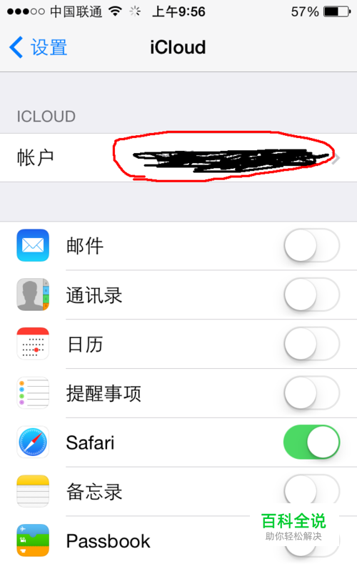 进入icould选项后,点击帐号选项;