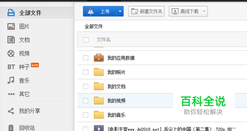 在这里先测试一下,假如百度网盘里没有视频文件,我们可以利用百度网盘上传 的功能,把视频文件上传到云存储里,下图是我上传的视频文件