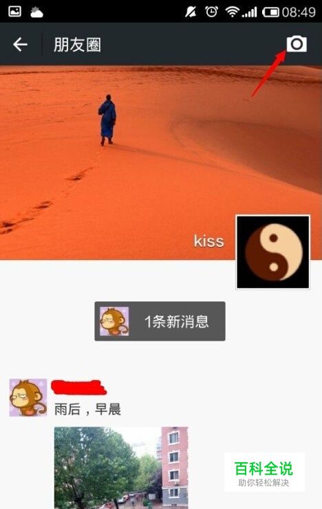 那怎么才能发面图片配文字呢,这里主要说一下拍照的照片吧。还是点击那个相机图标,注意,这次是点击。会有提示拍摄照片。