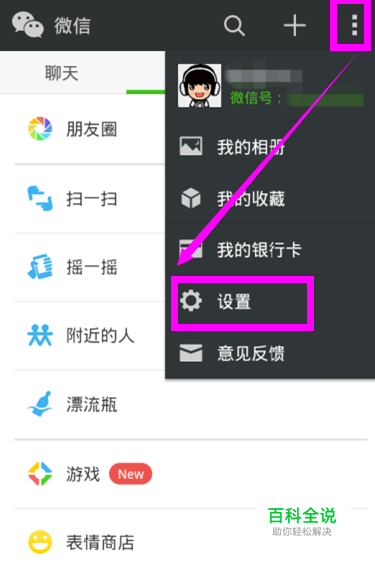 登陆微信,打开首页,点击右上方的三点成线的图标,选择 设置按钮