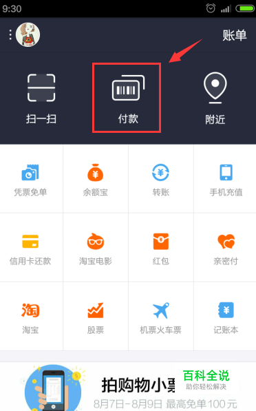 现在很多超市便利店等都支持支付宝线下支付,到这些门店购买东西付款可以拿出手机,连上网络,打开支付宝钱包,点击首页“付款”。