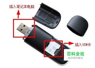 然后,把UIM卡插入天翼无线宽带上网卡里的UIM卡槽,然后将天翼无线宽带上网卡插入笔记本电脑的USB接口。(注意:说到无线上网,人们就会把无线上网卡和无线路由器联想在一起,认为一定要这两样东西才可以无线上网,其实,这个过程不需要路由器就可以上网)