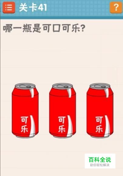 关卡41,哪一瓶是可口可乐。用手指擦拭下可乐上面空白地方,会有文字出现。点击下可口可乐的瓶子即可过关。