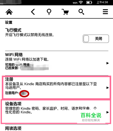 注册完成登陆后,便可以显示您自己的名字。那么这个kindle便只属于你自己,是世界上独一无二的。紧接着你可以进入设备选项对kindle进行个性化的设置。
