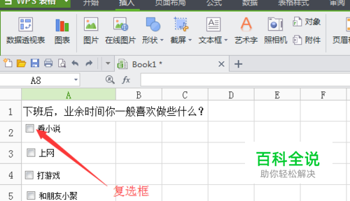 在“插入”菜单下的工具栏中选择插入复选框
