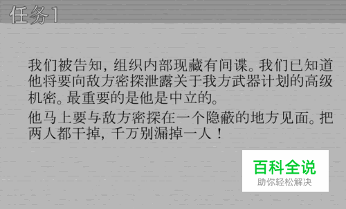 请按我标记得1.2.3的顺序来杀人,先杀哨兵是因为不先杀他的话,只要一开枪就会被发现,2.3的顺序倒是随便你怎么杀