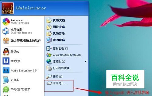 1、在开始菜单下,点击运行,输入regedit,进入注册表编辑器目录下