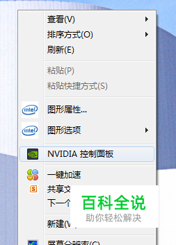 1:鼠标在桌面空白处,单击鼠标右键,选择“NVIDIA 控制面板”