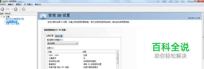 2:进入 NVIAID 控制面板,选择“管理 3D 设置”