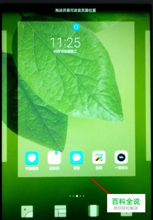 用手指长按手机桌面空白处,即可进入桌面设置窗口。