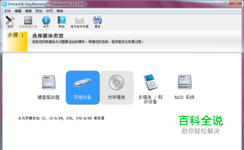 选择媒体类型:电脑安装运行easyrecovery后,运行后连接上苹果手机,选择内存设备,为了更直接的找到图形文件,可以在选项中设置文件类型为图像文件。