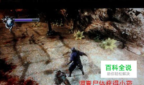 动画过后正式开始游戏,调查脚边的尸体可获得灵命药X1
