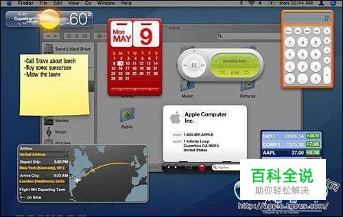 Dashboard 里还有 widget 可搭配 iTunes 或 iCal 等 Mac 应用程式使用,让您不必打开原应用程式,即可取用行程和音乐。Dashboard 的好用之处还不仅于此,您可以将其他 widget 加到 Dashboard 里,或者要是您一时技痒,也可以自己制作 widget。