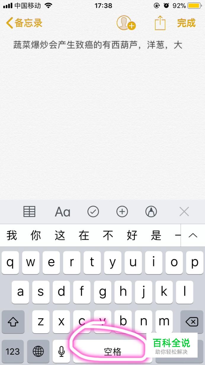 最后,当你输入一些字后想换行,一直按空格键即可换行。
